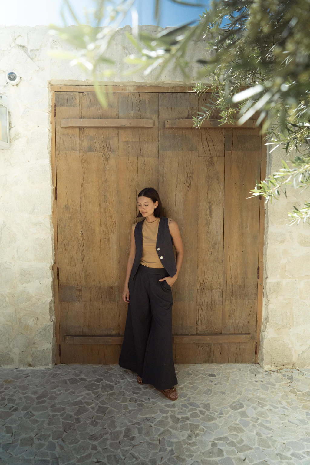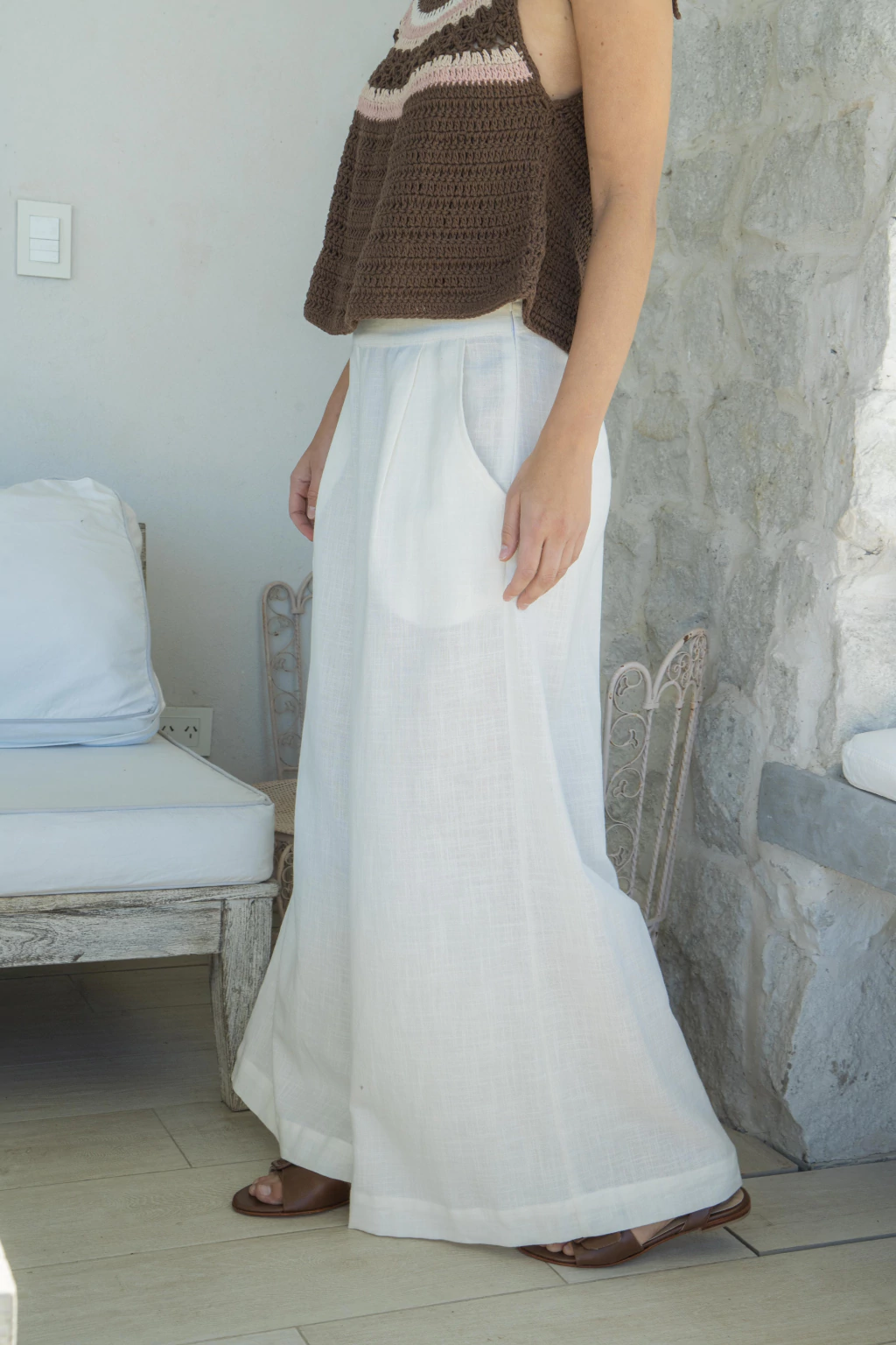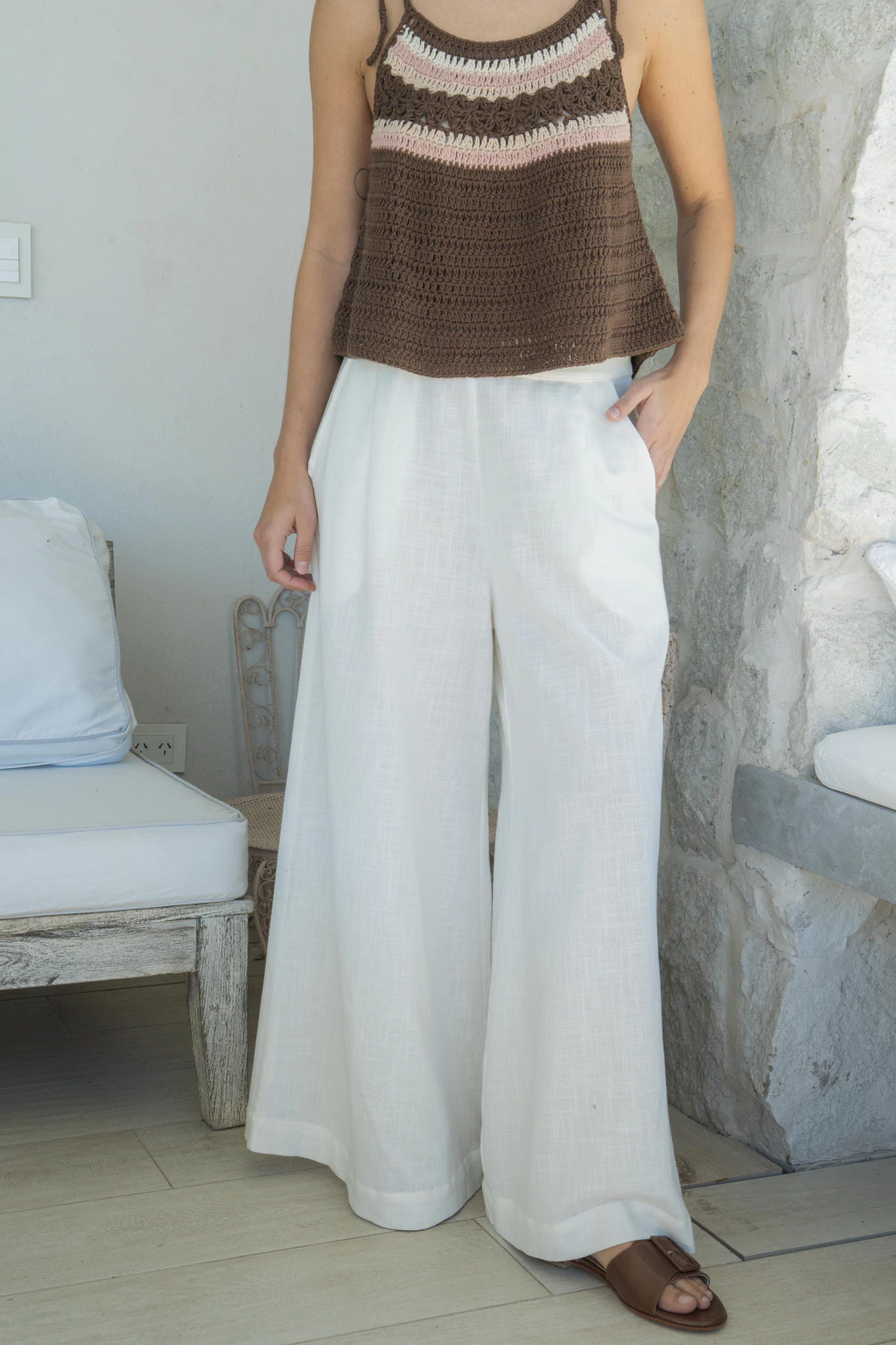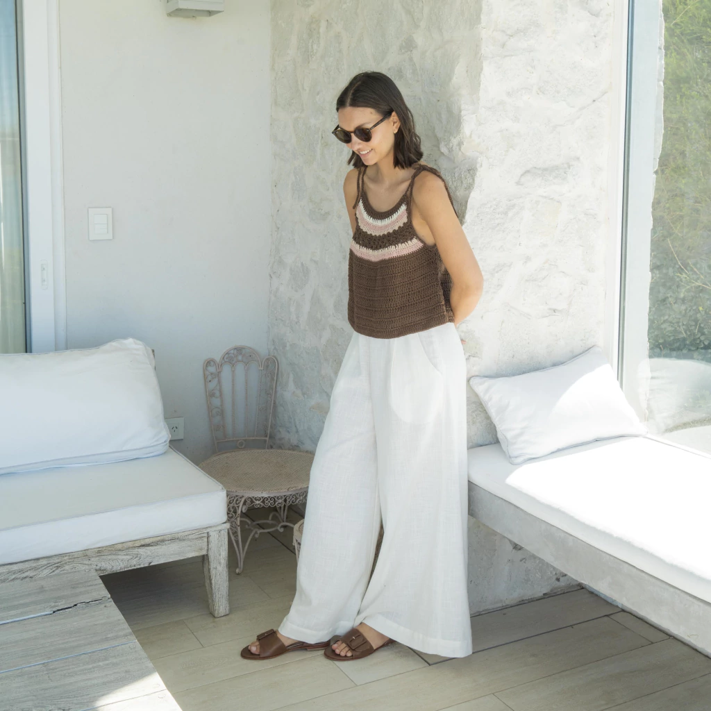 Palazo tiro alto corte sastrero con cierre en en el costado y pinzas en la cintura