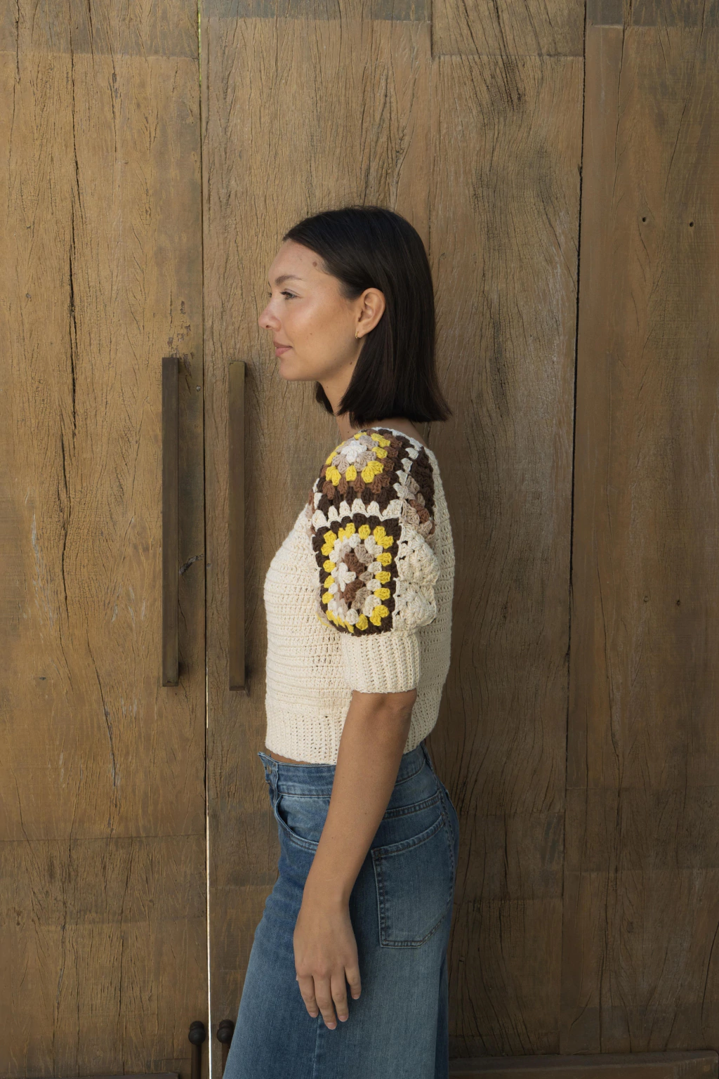 Remera tejida a crochet con mangas globo