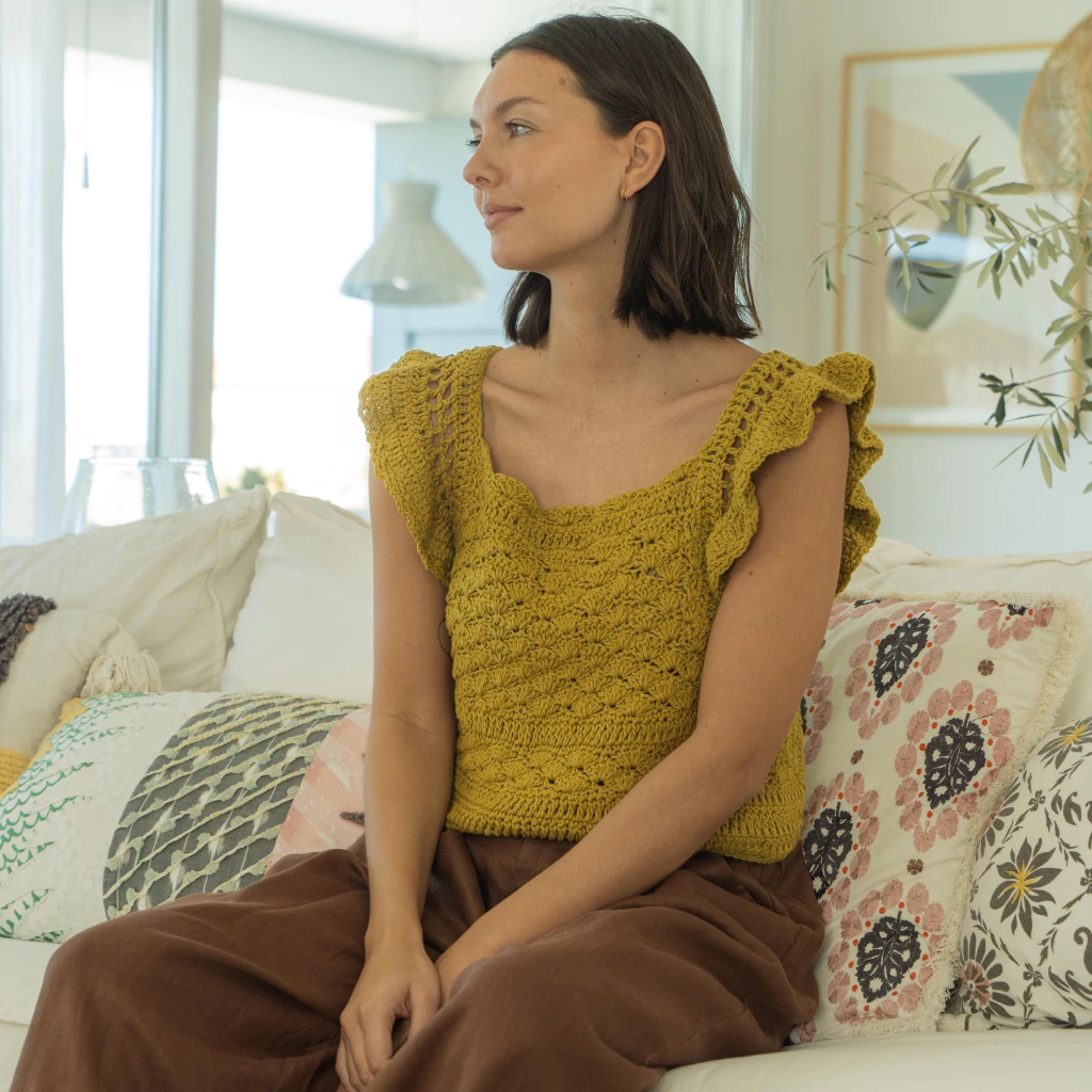 Top tejido a mano en hilo de algodon en crochet.