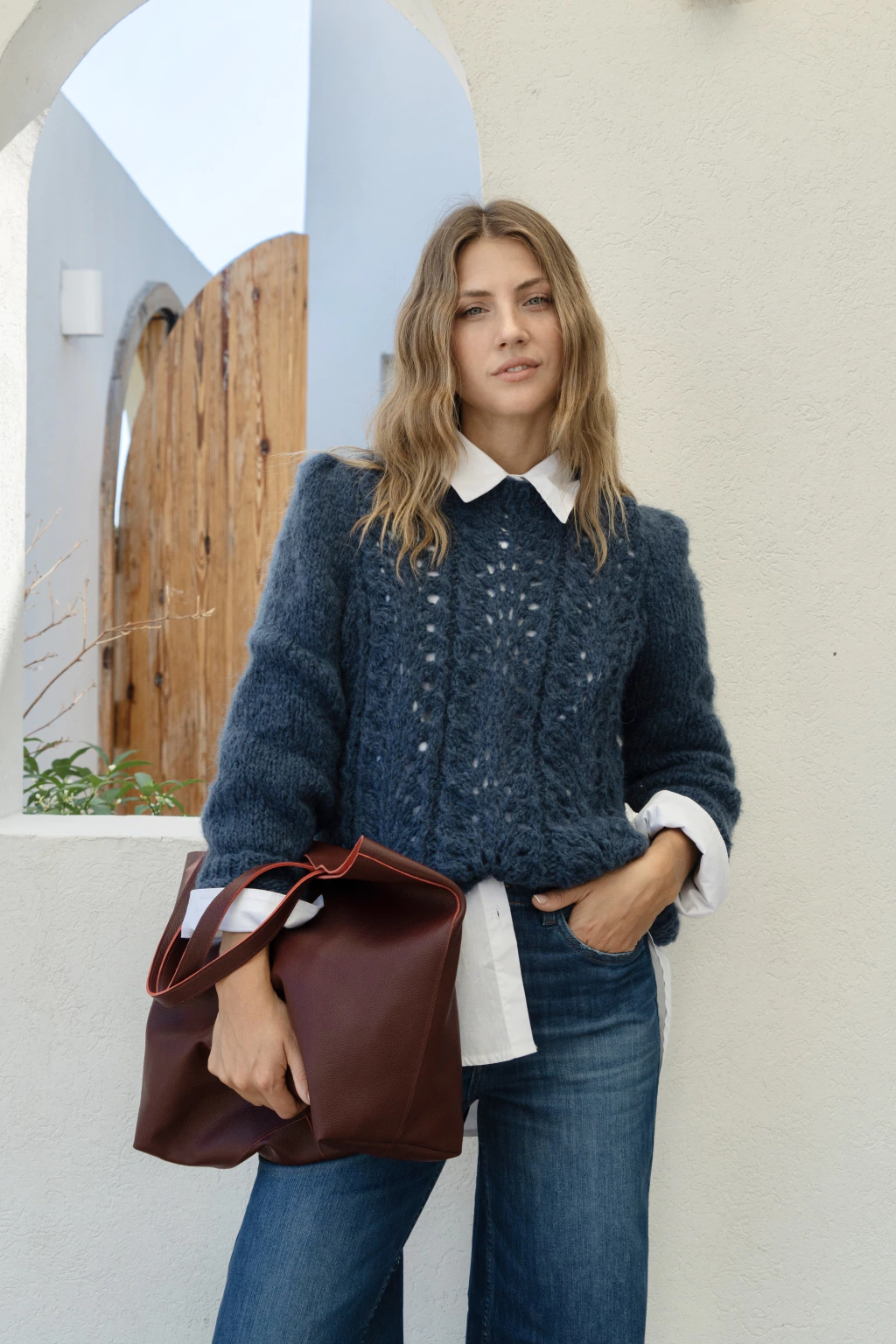 Cartera shopper confeccionada en 100% cuero floater, con mini bag interno.